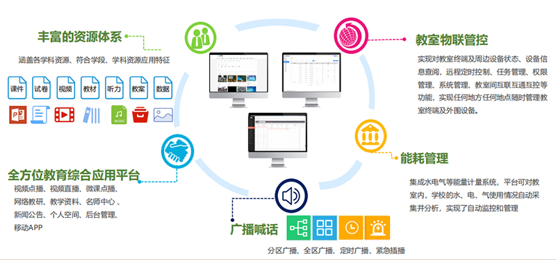 藍島科技深入教育用戶進行解決方案設(shè)計和創(chuàng)新,通過移動互聯(lián)、物聯(lián)感知、云計算、大數(shù)據(jù)、人工智能等新技術(shù),構(gòu)建智能感知環(huán)境和新型的教育教學(xué)環(huán)境,并加強數(shù)字化教室環(huán)境的建設(shè),為教育行業(yè)客戶提供端到端的智慧校園整體解決方案。